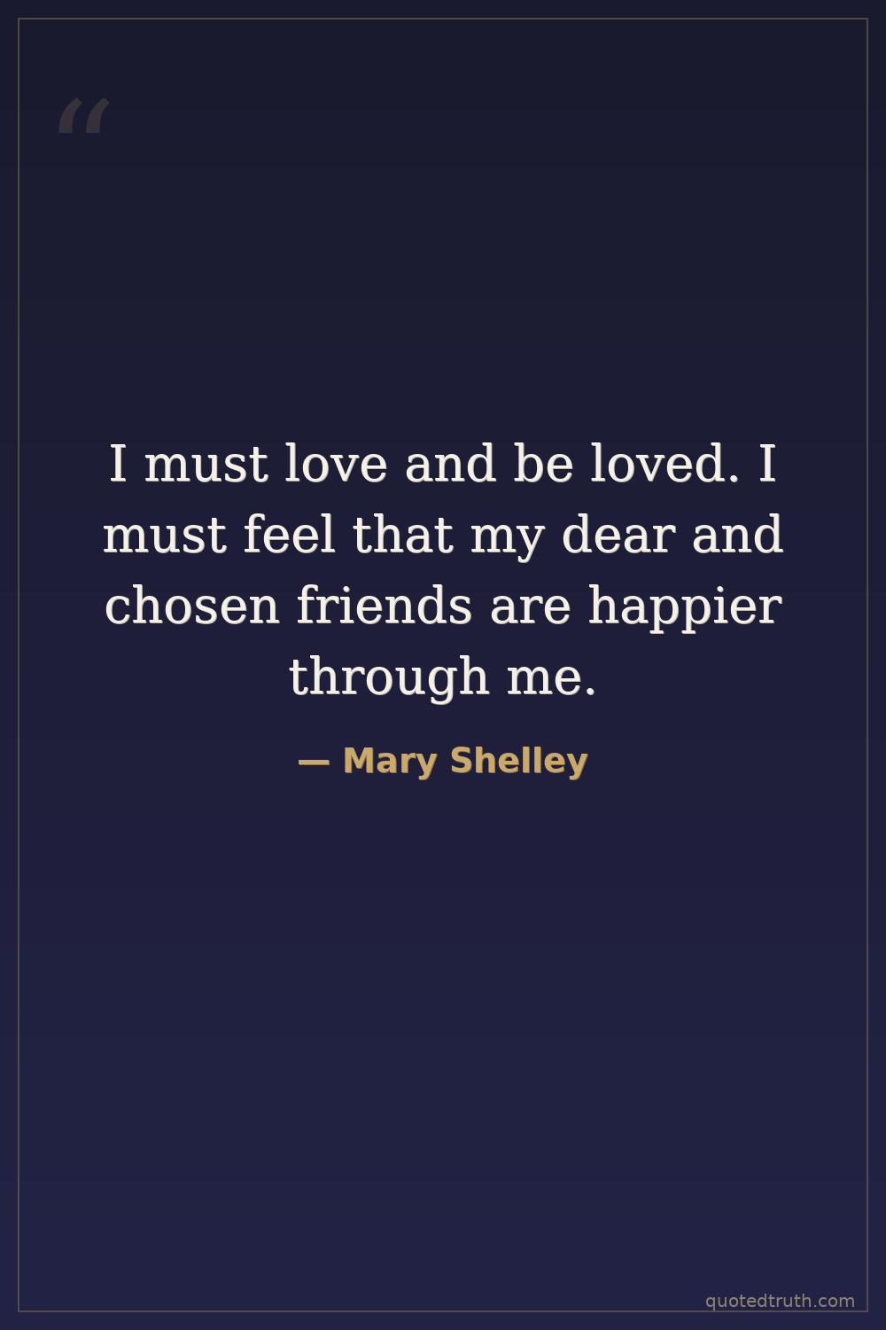 I must love and be loved. I must feel that my dear and chosen friends are happier through me.
