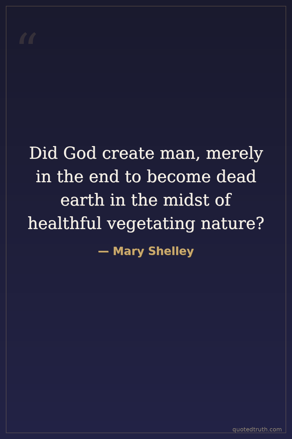 Did God create man, merely in the end to become dead earth in the midst of healthful vegetating nature?