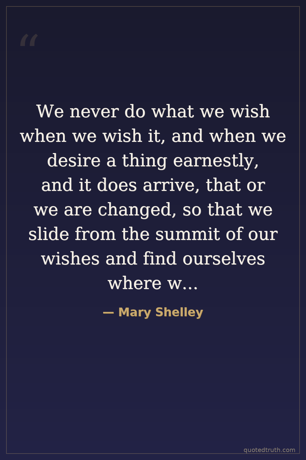 We never do what we wish when we wish it, and when we desire a thing earnestly, and it does arrive, that or we are changed, so that we slide from the summit of our wishes and find ourselves where we were.