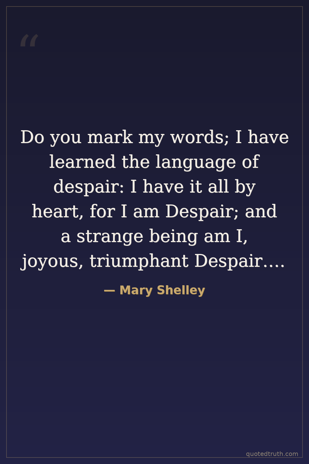 Do you mark my words; I have learned the language of despair: I have it all by heart, for I am Despair; and a strange being am I, joyous, triumphant Despair….