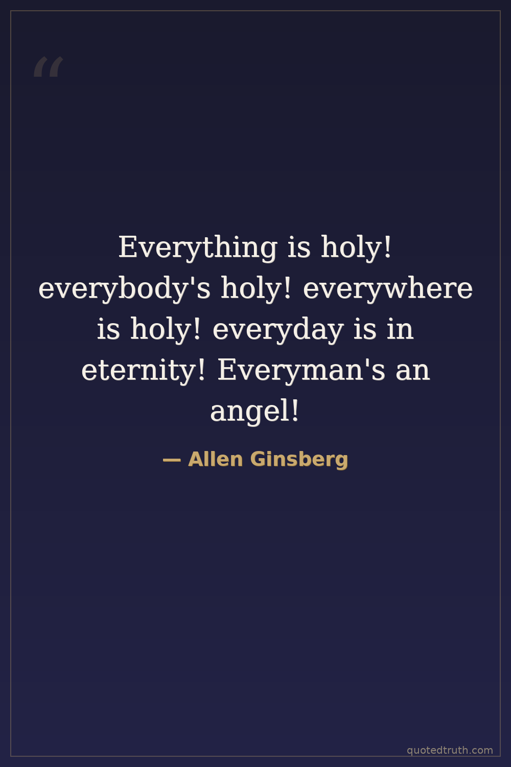 Everything is holy! everybody's holy! everywhere is holy! everyday is in eternity! Everyman's an angel!