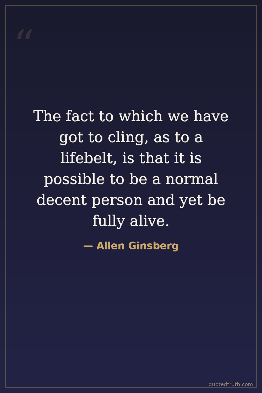 The fact to which we have got to cling, as to a lifebelt, is that it is possible to be a normal decent person and yet be fully alive.