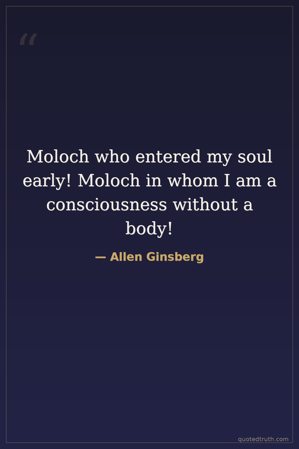 Moloch who entered my soul early! Moloch in whom I am a consciousness without a body!