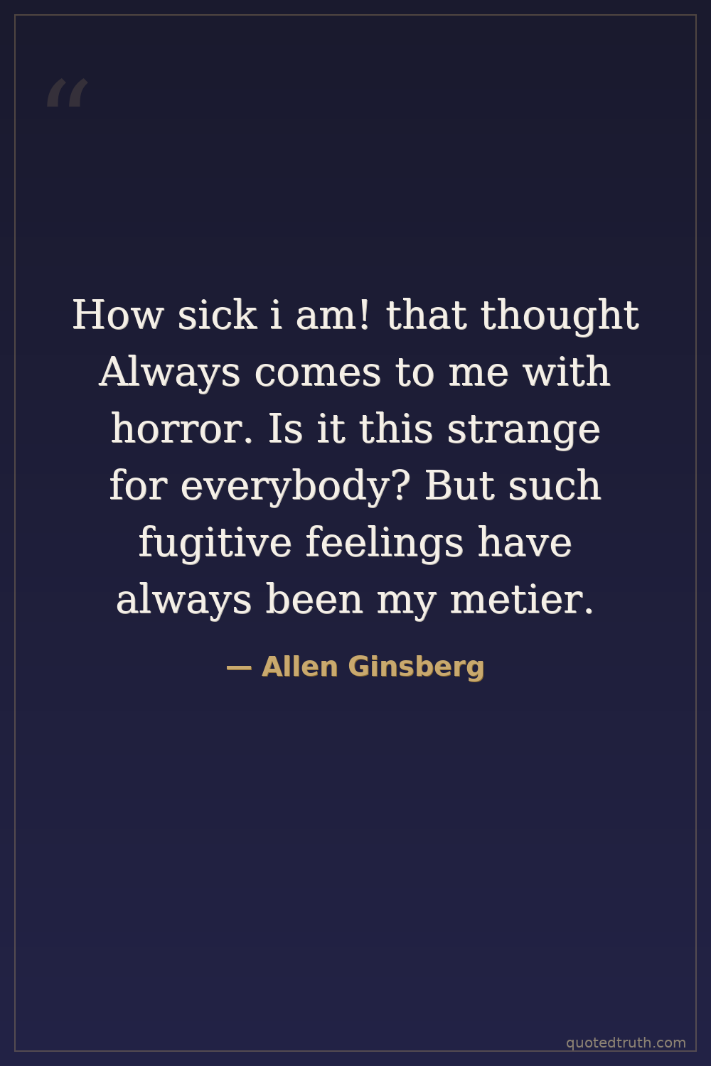 How sick i am! that thought Always comes to me with horror. Is it this strange for everybody? But such fugitive feelings have always been my metier.
