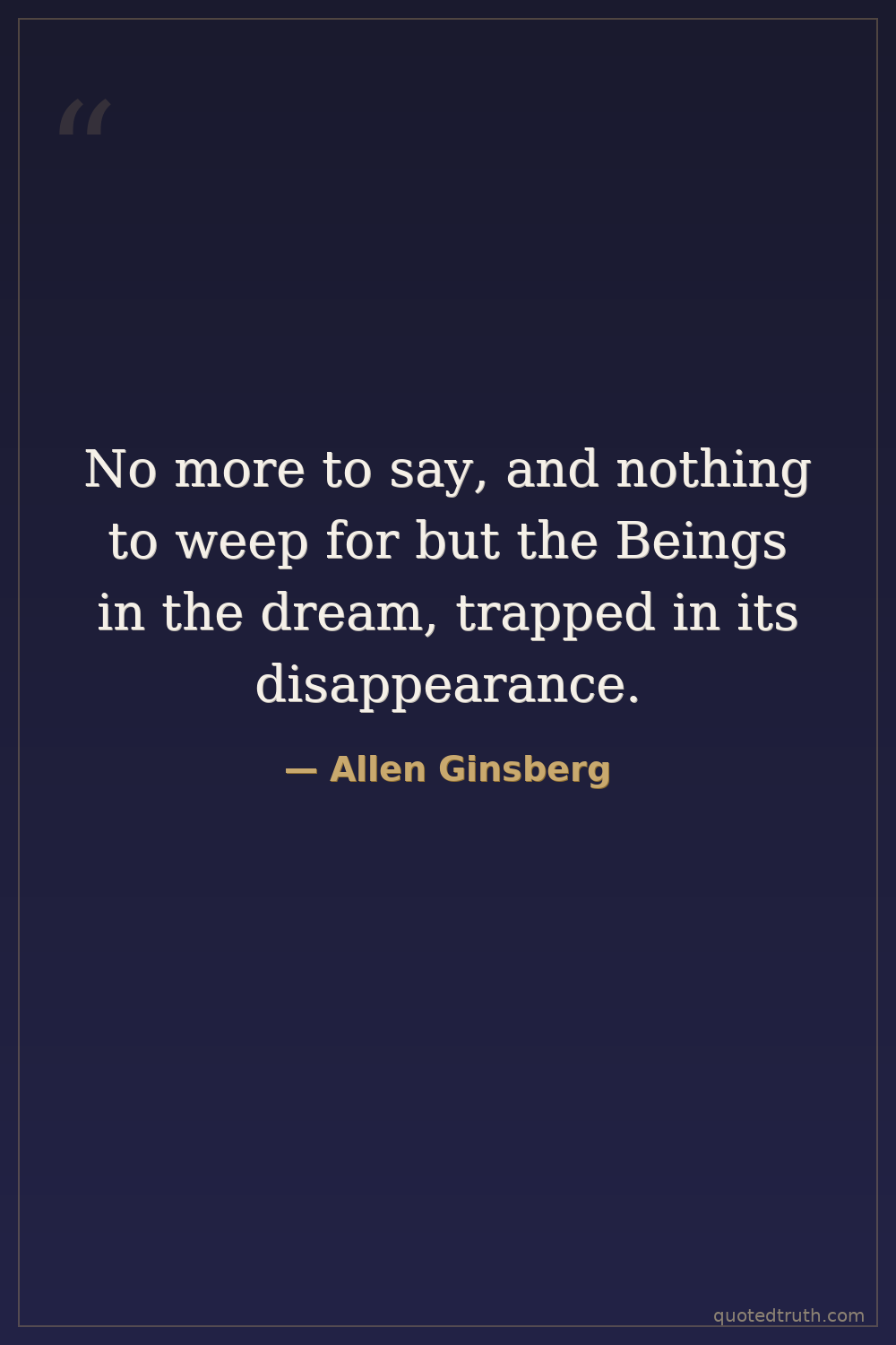 No more to say, and nothing to weep for but the Beings in the dream, trapped in its disappearance.