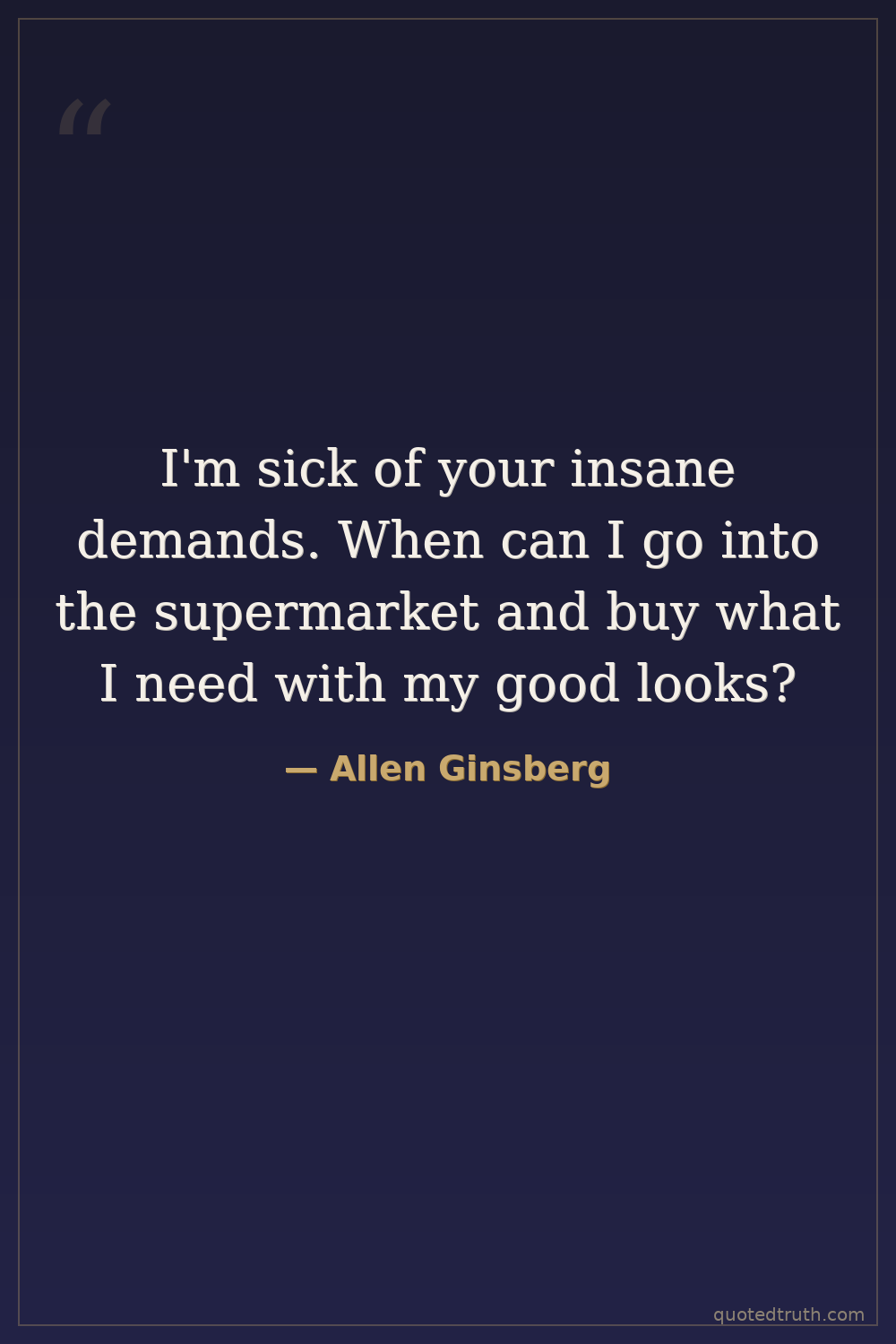 I'm sick of your insane demands. When can I go into the supermarket and buy what I need with my good looks?