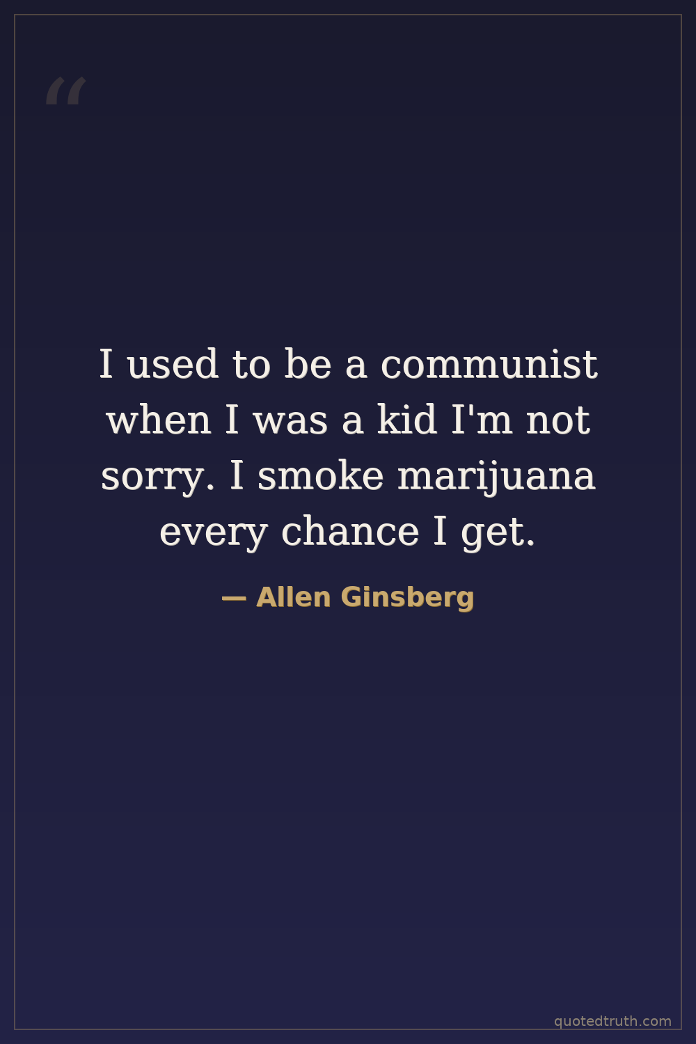 I used to be a communist when I was a kid I'm not sorry. I smoke marijuana every chance I get.