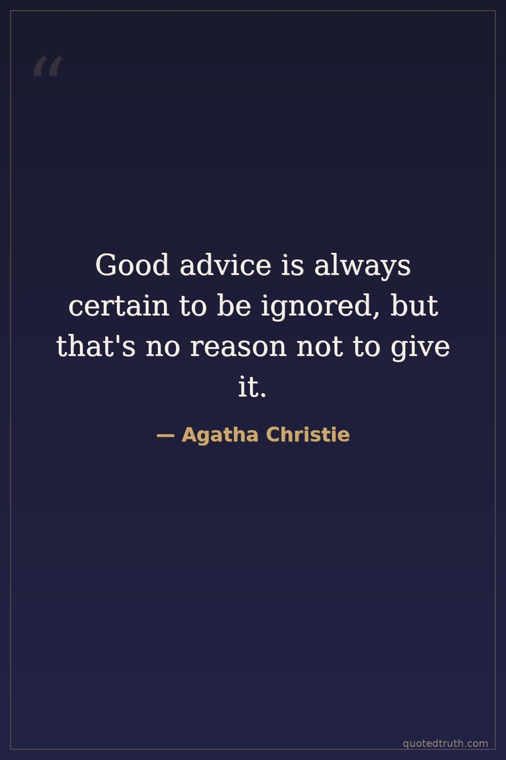 Good advice is always certain to be ignored, but that's no reason not to give it.