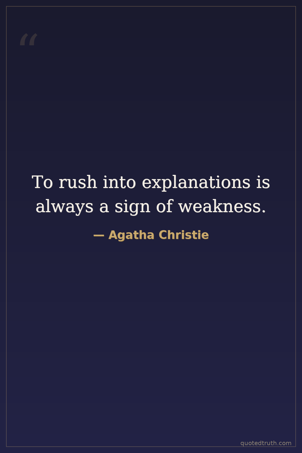 To rush into explanations is always a sign of weakness.