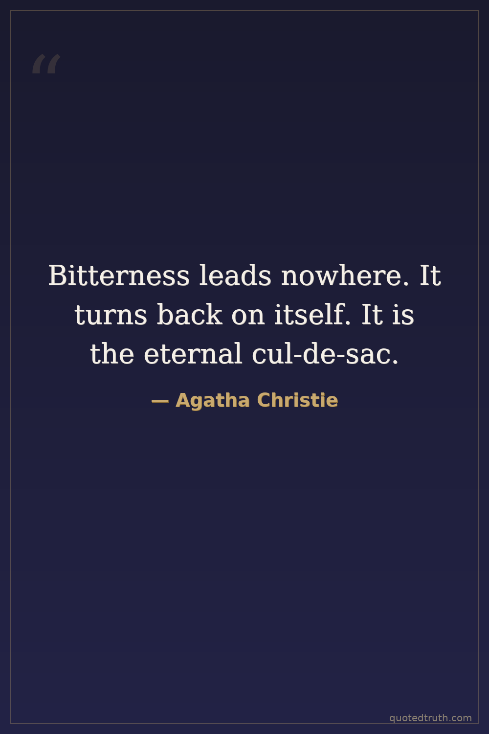 Bitterness leads nowhere. It turns back on itself. It is the eternal cul-de-sac.