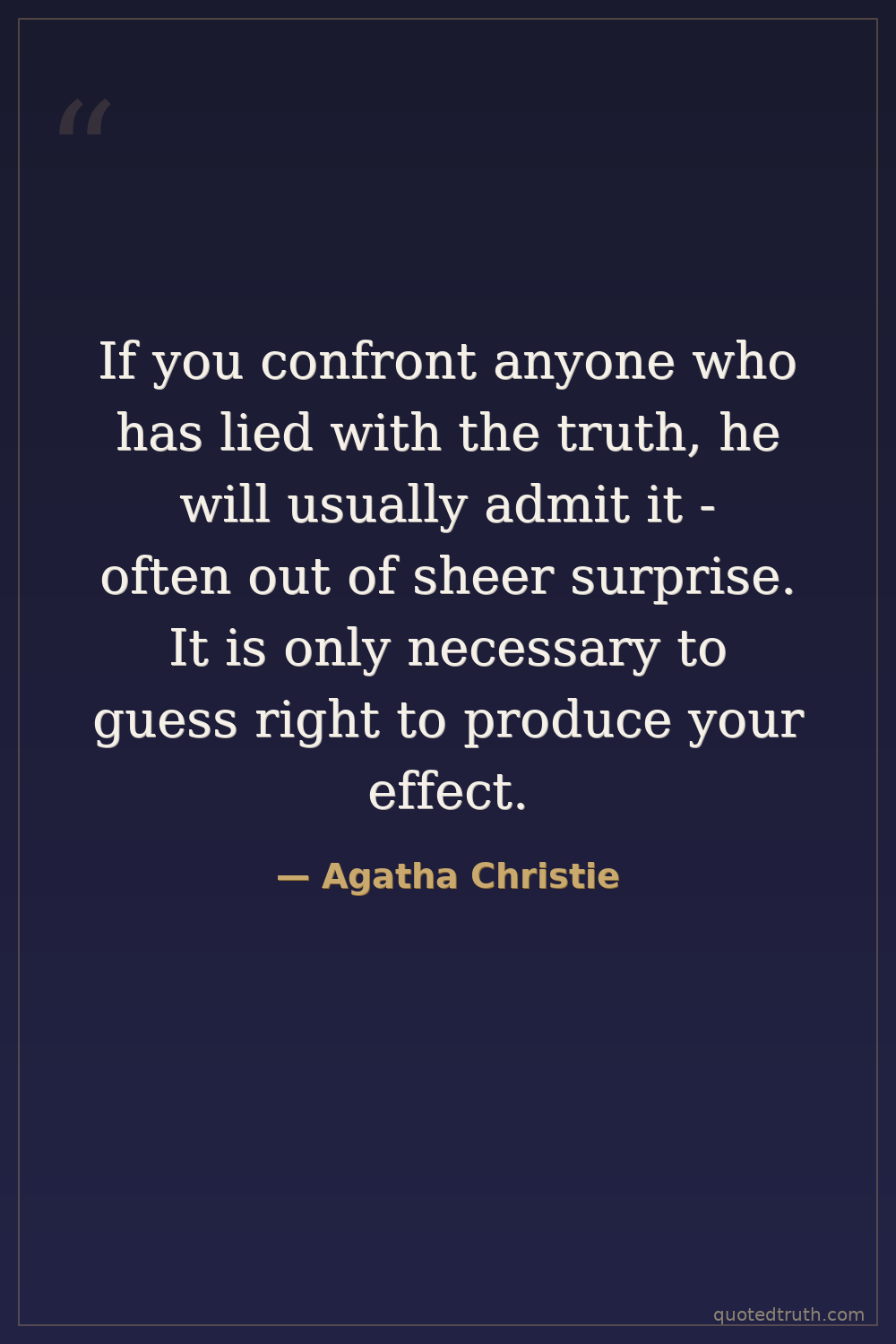 If you confront anyone who has lied with the truth, he will usually admit it - often out of sheer surprise. It is only necessary to guess right to produce your effect.