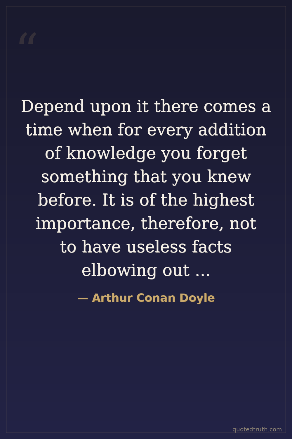 Depend upon it there comes a time when for every addition of knowledge you forget something that you knew before. It is of the highest importance, therefore, not to have useless facts elbowing out the useful ones.