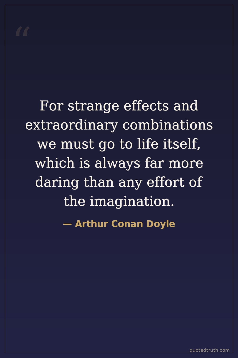 For strange effects and extraordinary combinations we must go to life itself, which is always far more daring than any effort of the imagination.