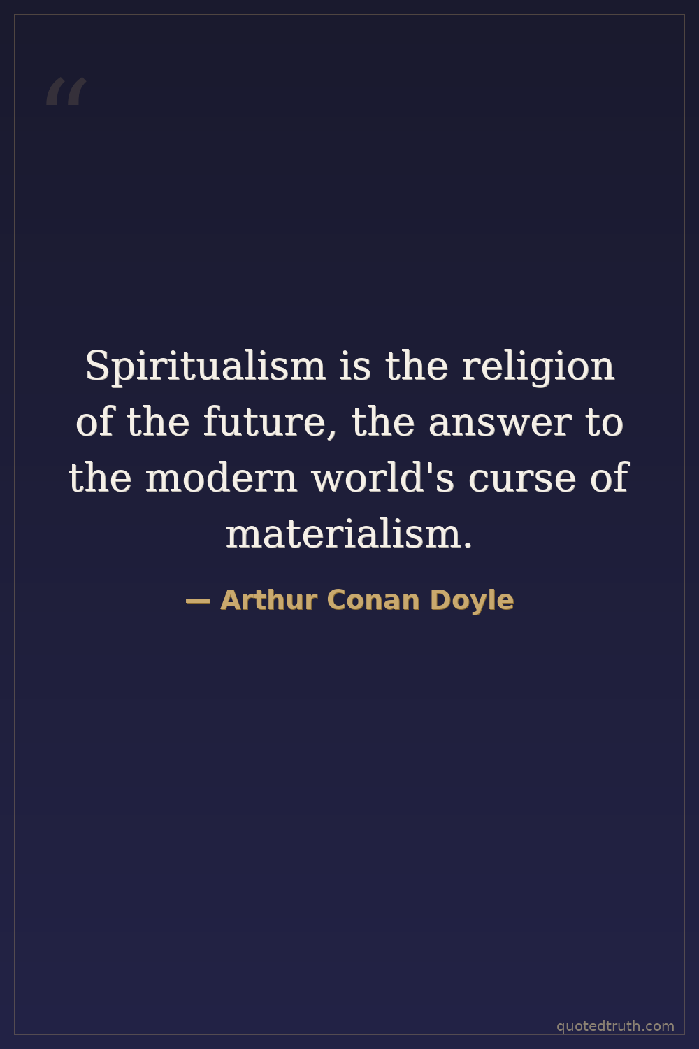 Spiritualism is the religion of the future, the answer to the modern world's curse of materialism.