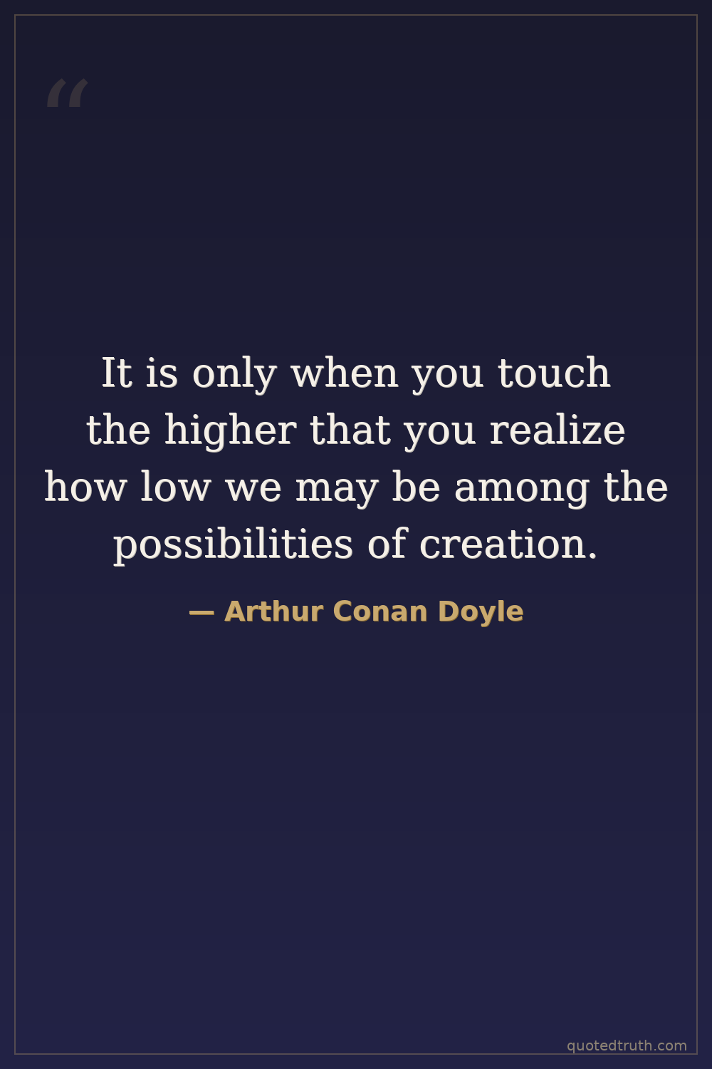 It is only when you touch the higher that you realize how low we may be among the possibilities of creation.