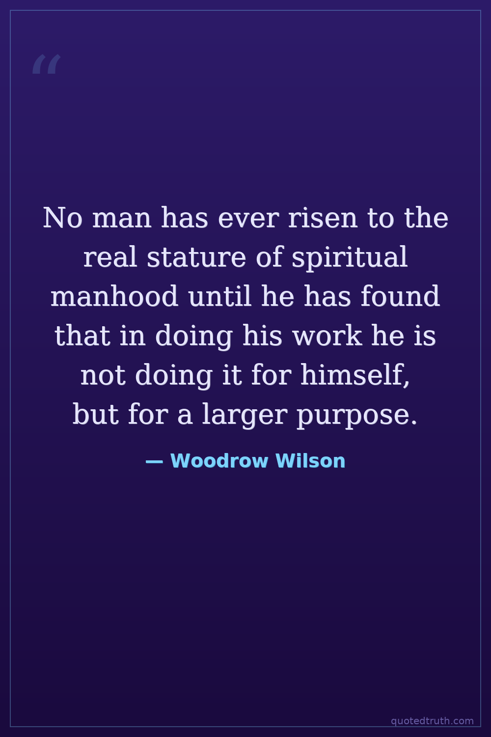No man has ever risen to the real stature of spiritual manhood until he has found that in doing his work he is not doing it for himself, but for a larger purpose.