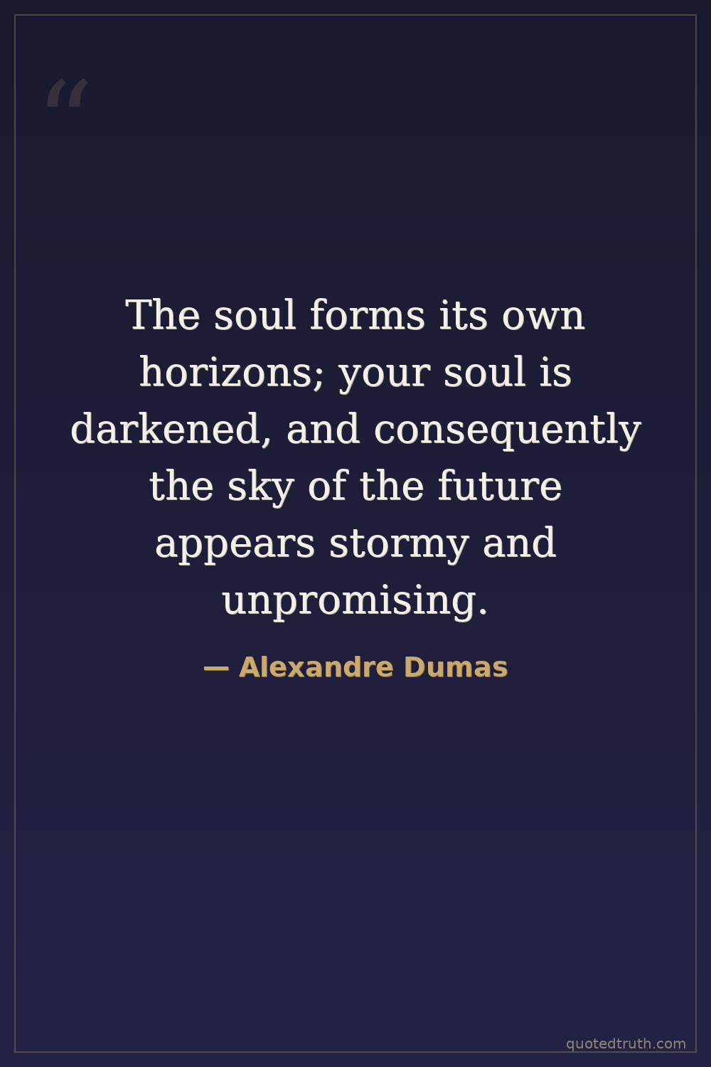 The soul forms its own horizons; your soul is darkened, and consequently the sky of the future appears stormy and unpromising.