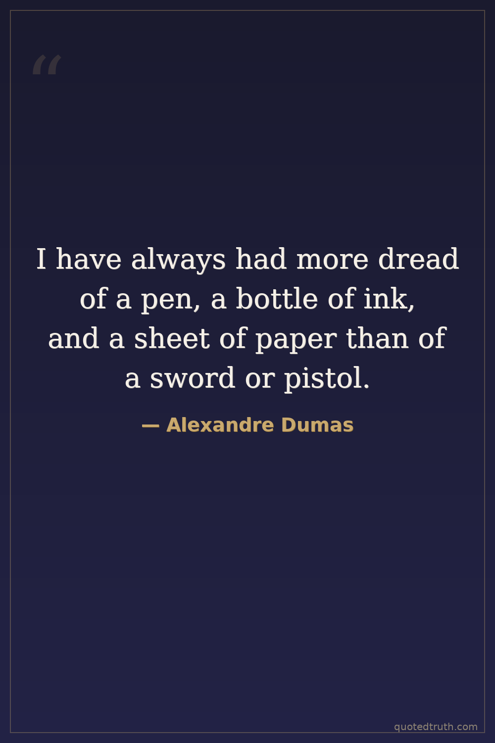 I have always had more dread of a pen, a bottle of ink, and a sheet of paper than of a sword or pistol.