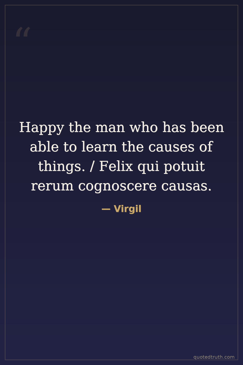 Happy the man who has been able to learn the causes of things. / Felix qui potuit rerum cognoscere causas.