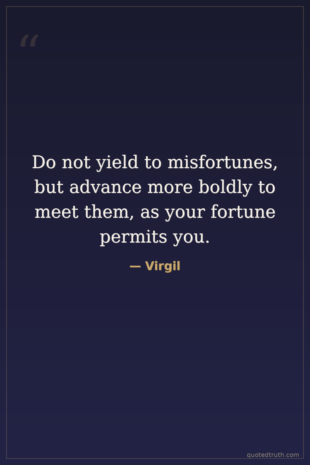 Do not yield to misfortunes, but advance more boldly to meet them, as your fortune permits you.