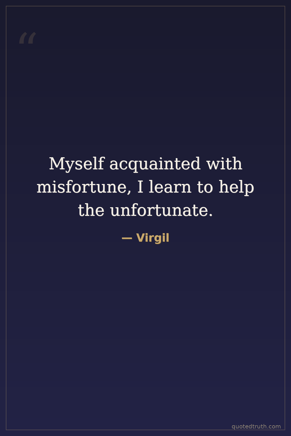 Myself acquainted with misfortune, I learn to help the unfortunate.