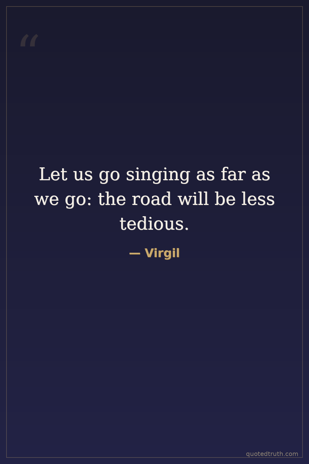 Let us go singing as far as we go: the road will be less tedious.