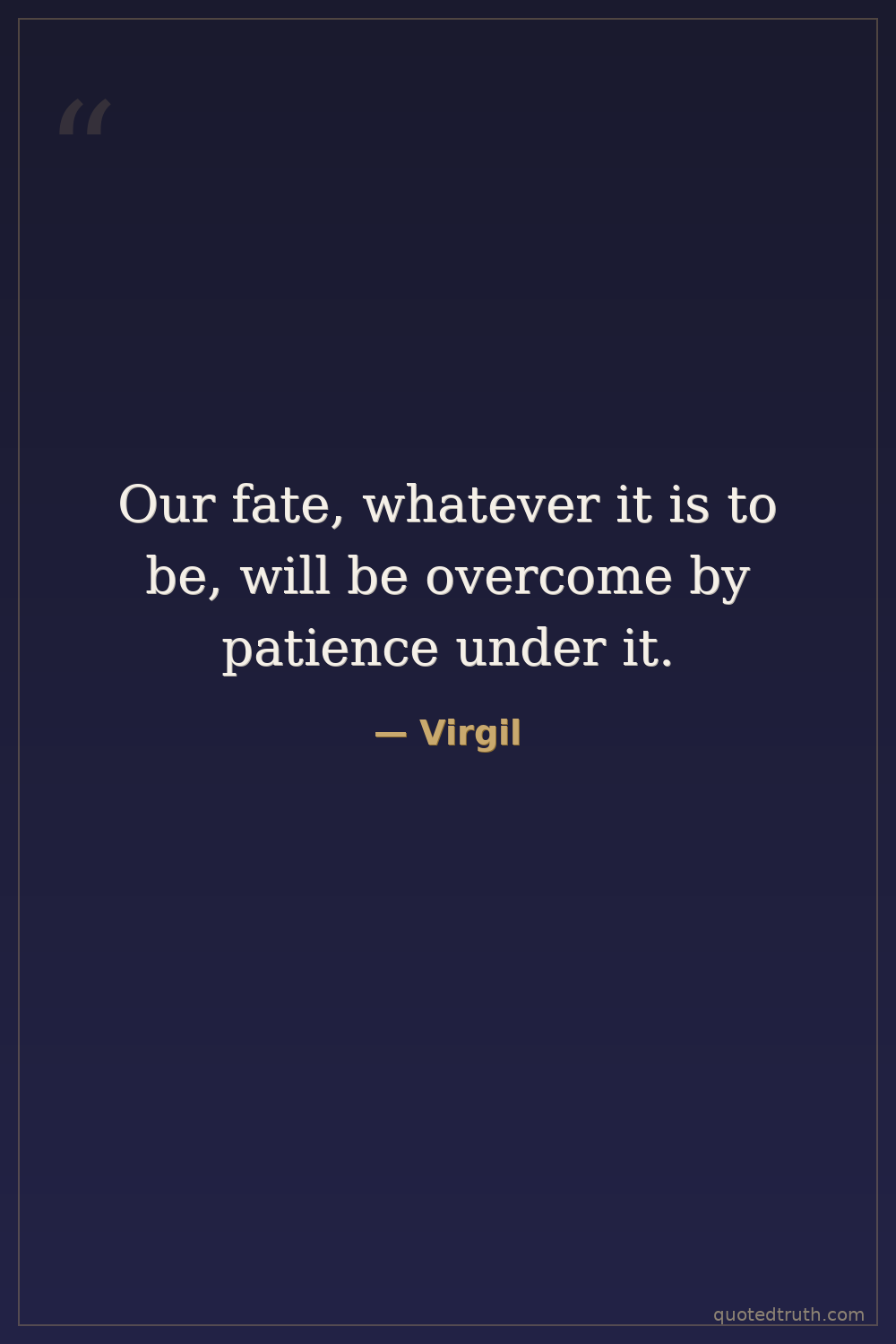 Our fate, whatever it is to be, will be overcome by patience under it.