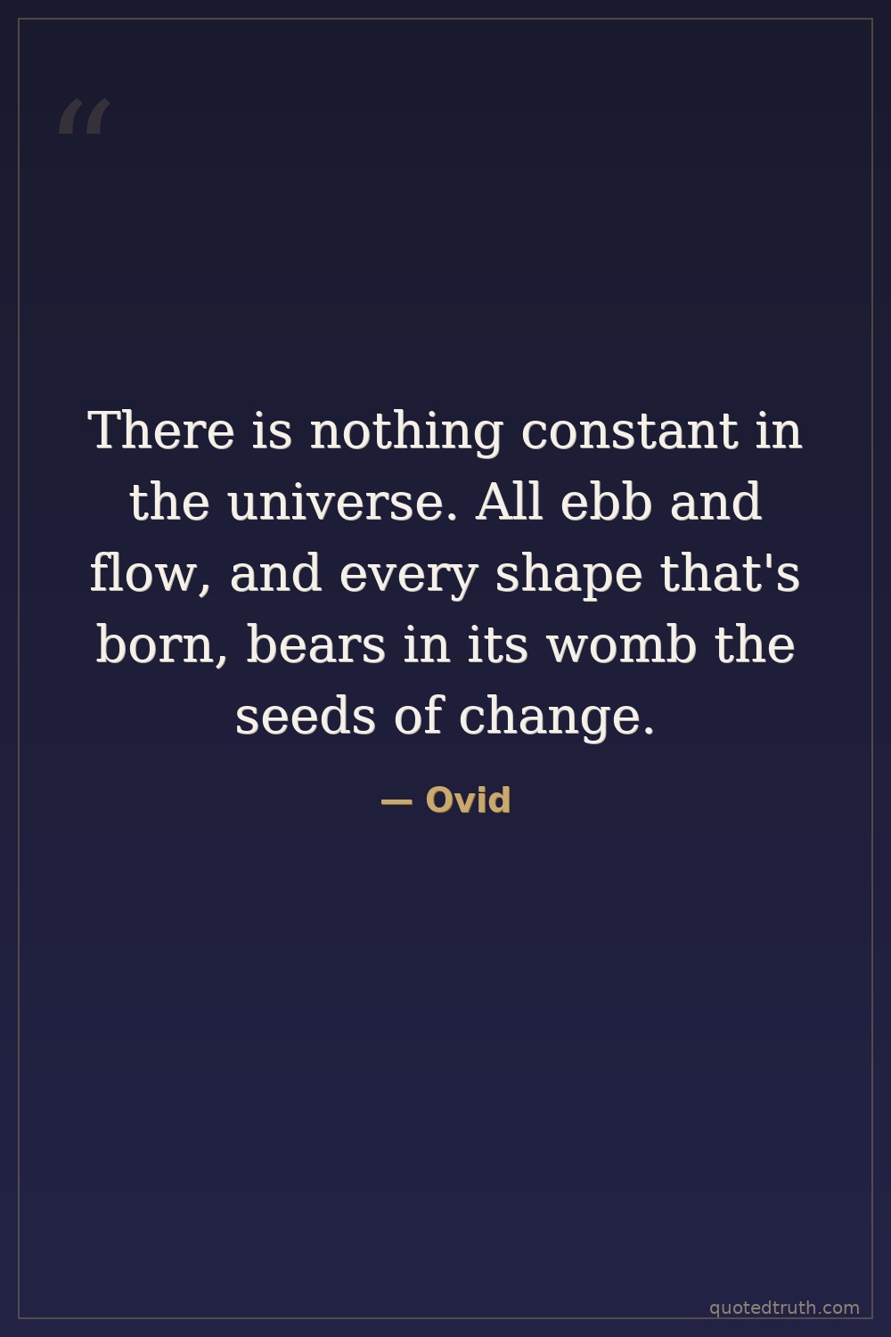 There is nothing constant in the universe. All ebb and flow, and every shape that's born, bears in its womb the seeds of change.