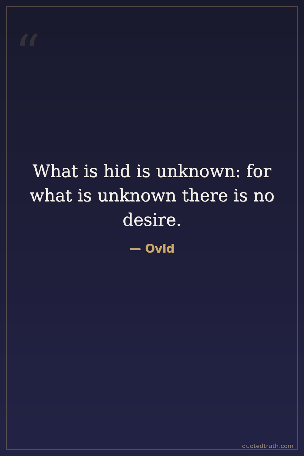 What is hid is unknown: for what is unknown there is no desire.