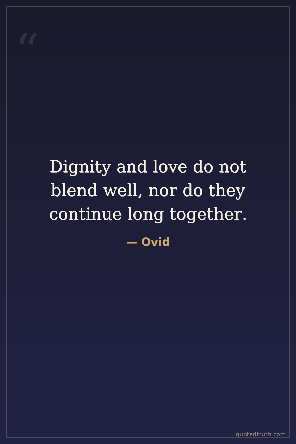 Dignity and love do not blend well, nor do they continue long together.