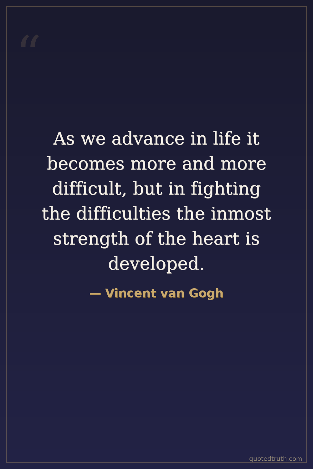As we advance in life it becomes more and more difficult, but in fighting the difficulties the inmost strength of the heart is developed.