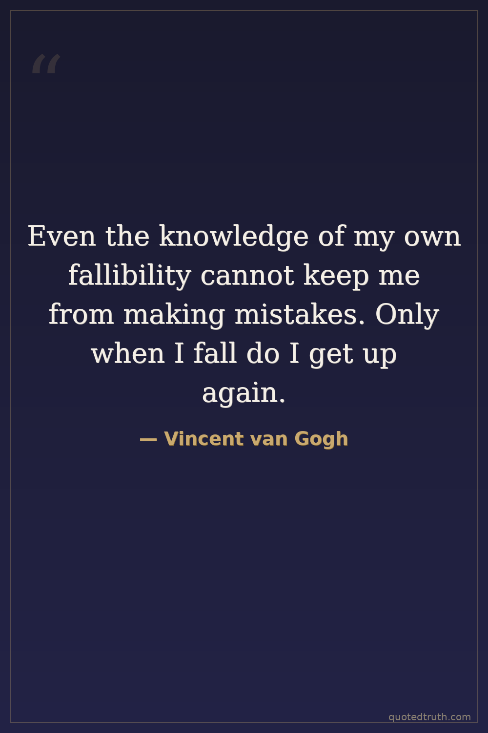 Even the knowledge of my own fallibility cannot keep me from making mistakes. Only when I fall do I get up again.