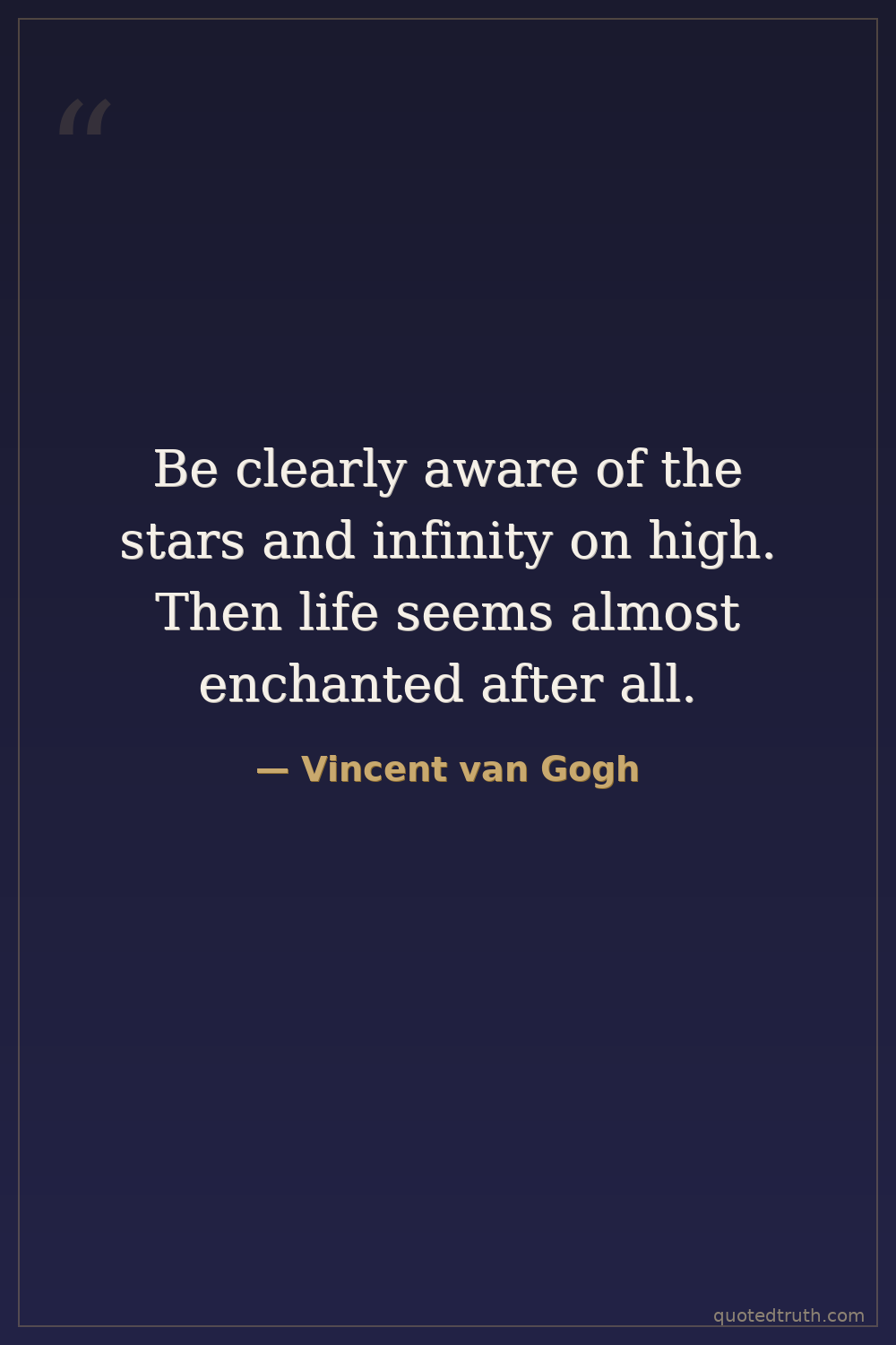 Be clearly aware of the stars and infinity on high. Then life seems almost enchanted after all.