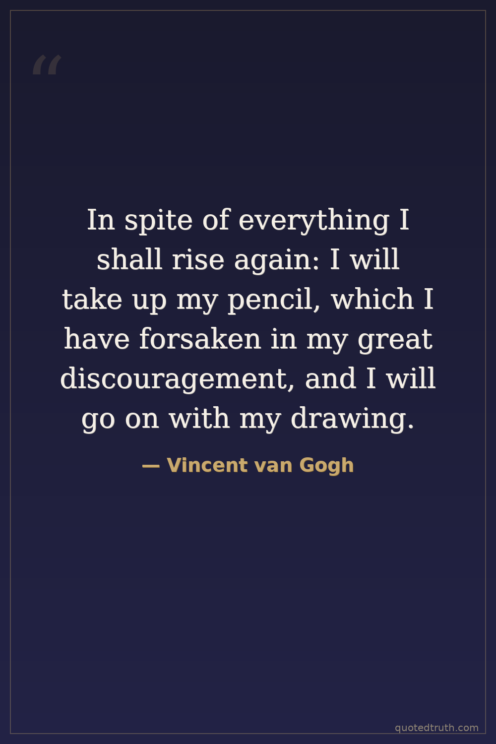 In spite of everything I shall rise again: I will take up my pencil, which I have forsaken in my great discouragement, and I will go on with my drawing.
