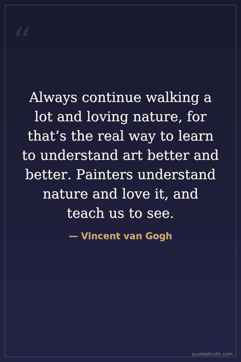 Always continue walking a lot and loving nature, for that’s the real way to learn to understand art better and better. Painters understand nature and love it, and teach us to see.