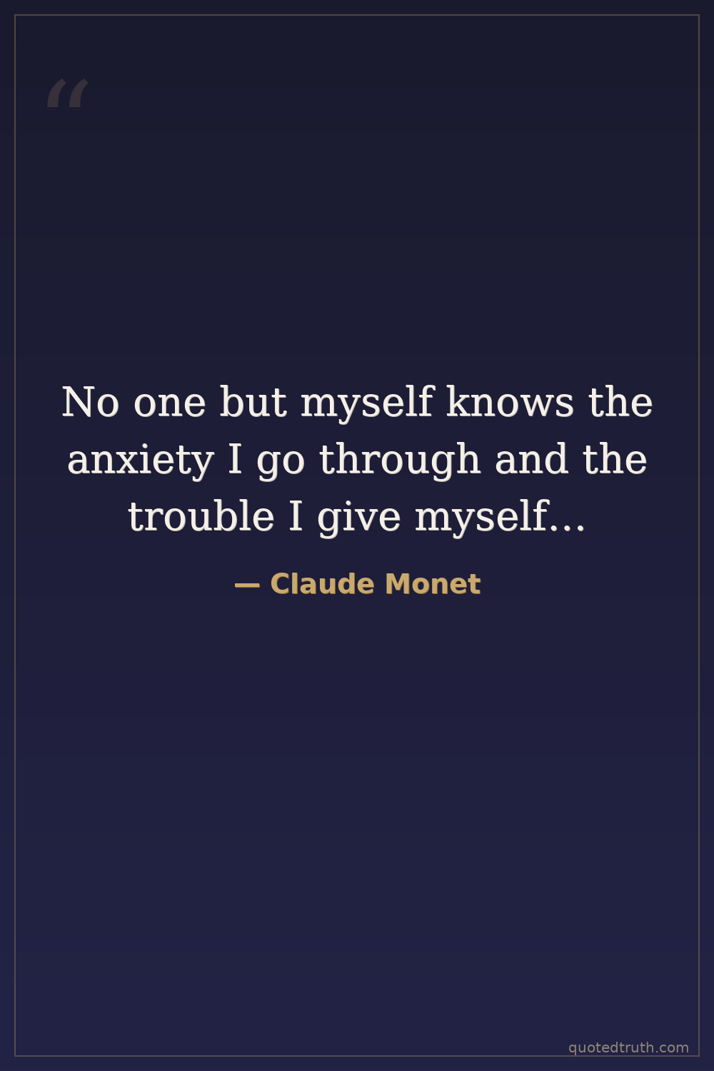 No one but myself knows the anxiety I go through and the trouble I give myself…