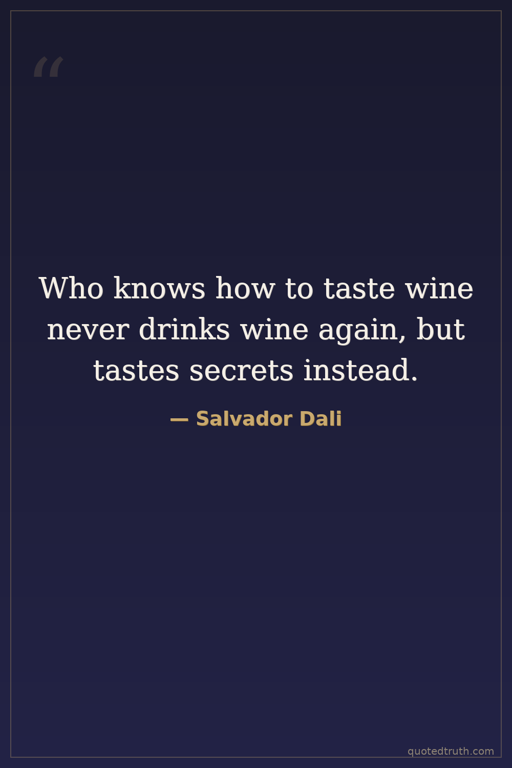 Who knows how to taste wine never drinks wine again, but tastes secrets instead.