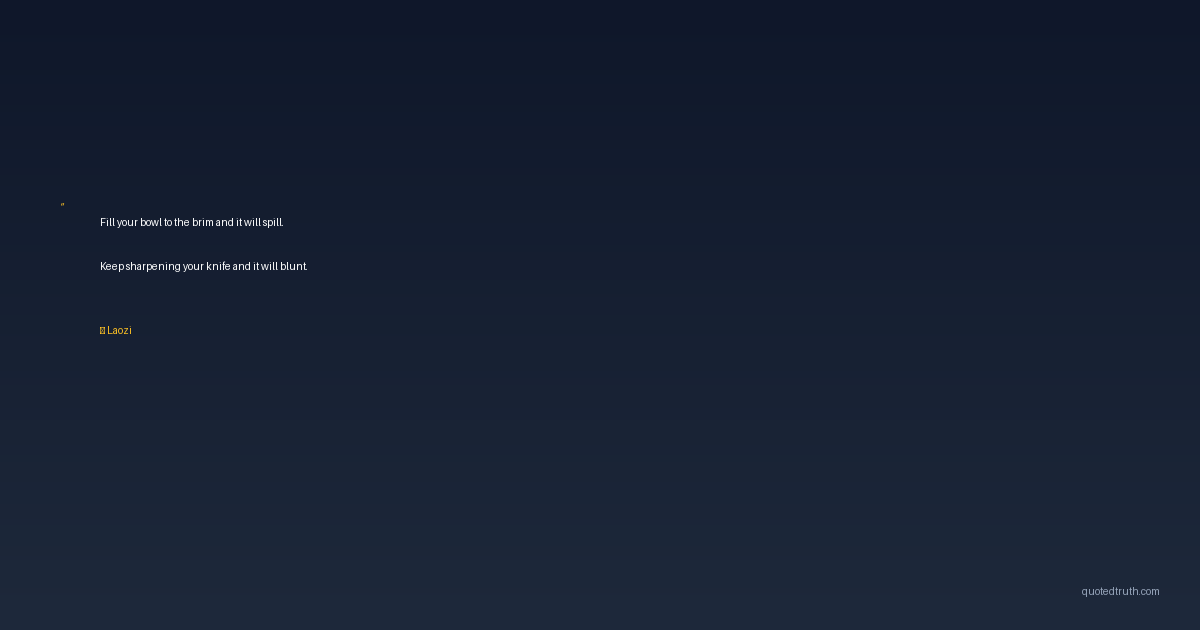 Fill your bowl to the brim and it will spill. Keep sharpening your knife and it will blunt.