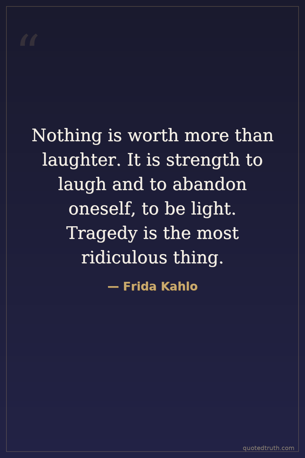 Nothing is worth more than laughter. It is strength to laugh and to abandon oneself, to be light. Tragedy is the most ridiculous thing.