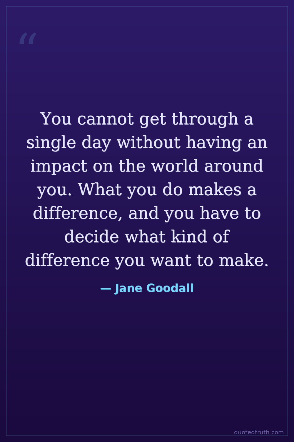 You cannot get through a single day without having an impact on the world around you. What you do makes a difference, and you have to decide what kind of difference you want to make.