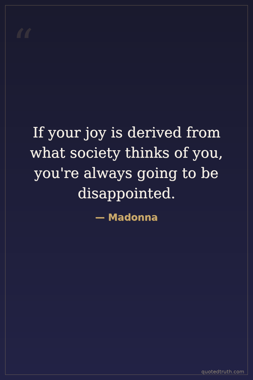 If your joy is derived from what society thinks of you, you're always going to be disappointed.