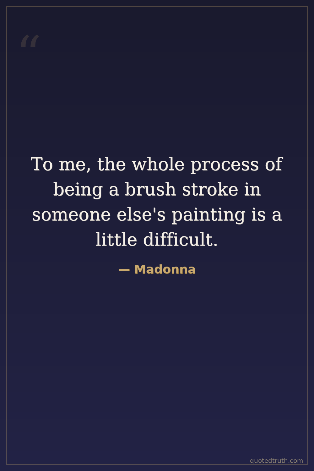 To me, the whole process of being a brush stroke in someone else's painting is a little difficult.