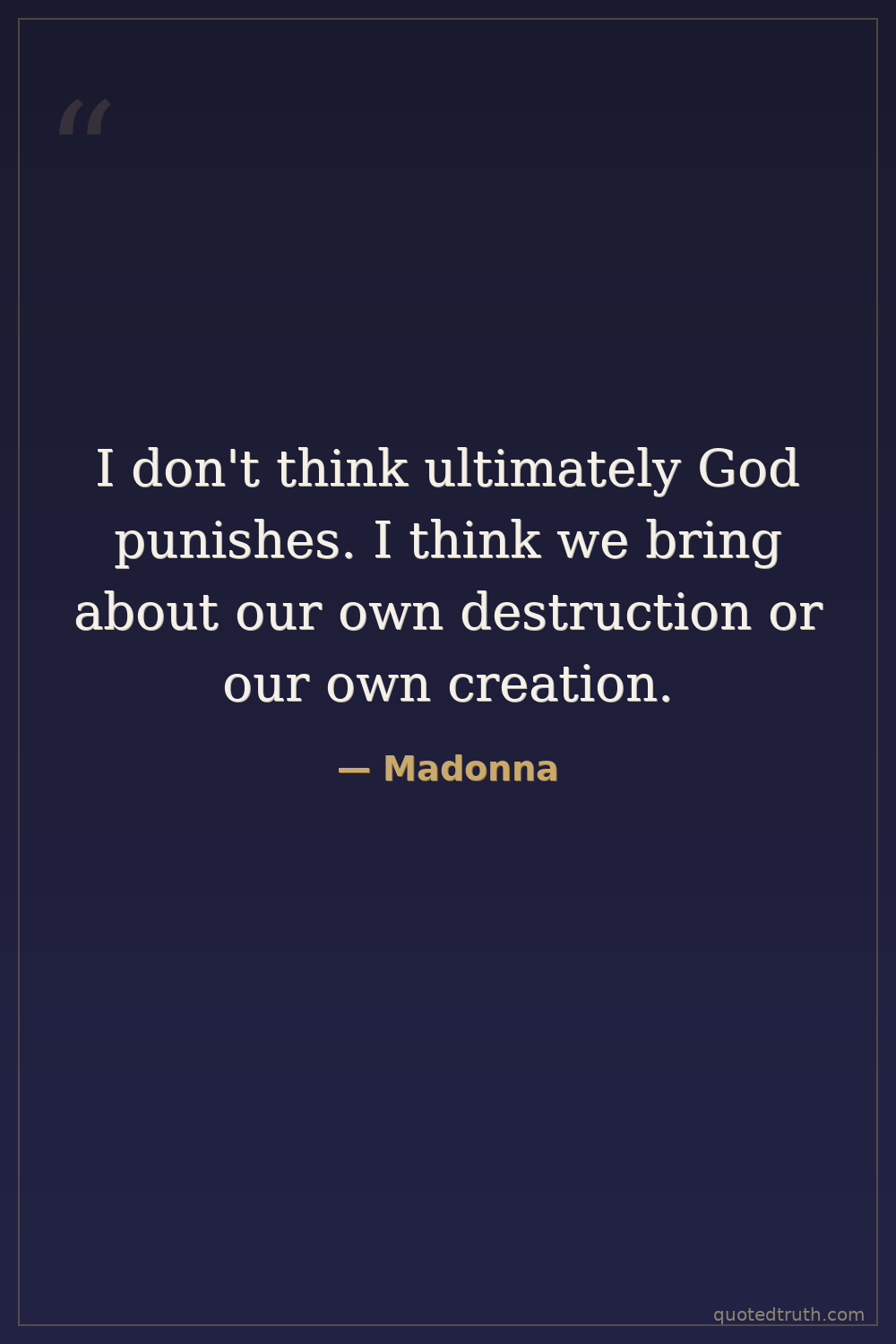 I don't think ultimately God punishes. I think we bring about our own destruction or our own creation.