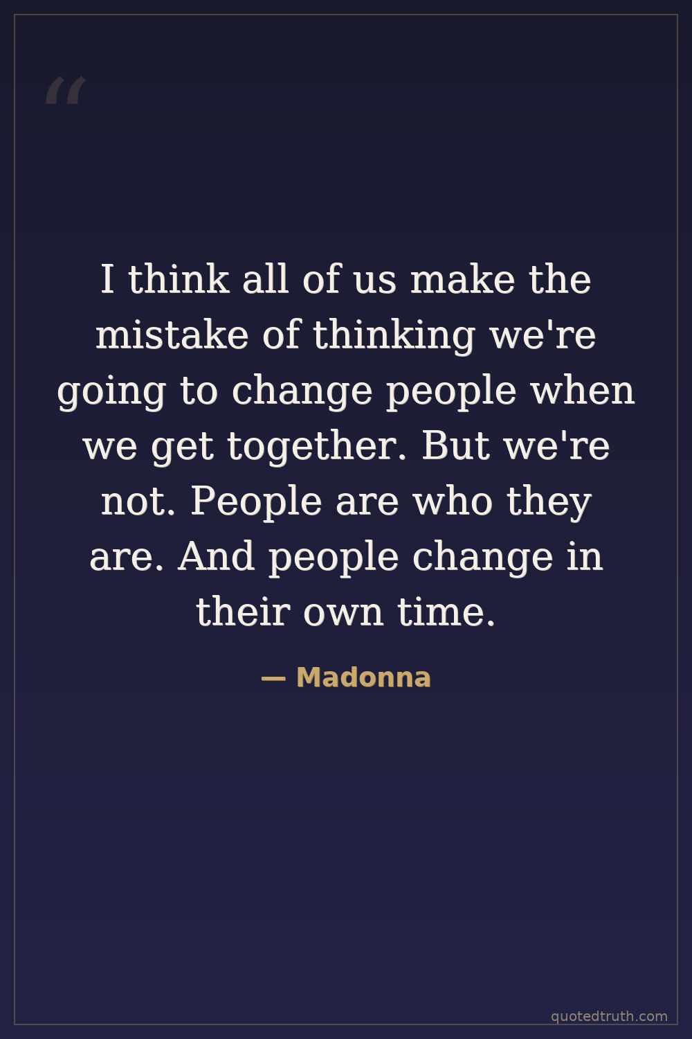 I think all of us make the mistake of thinking we're going to change people when we get together. But we're not. People are who they are. And people change in their own time.