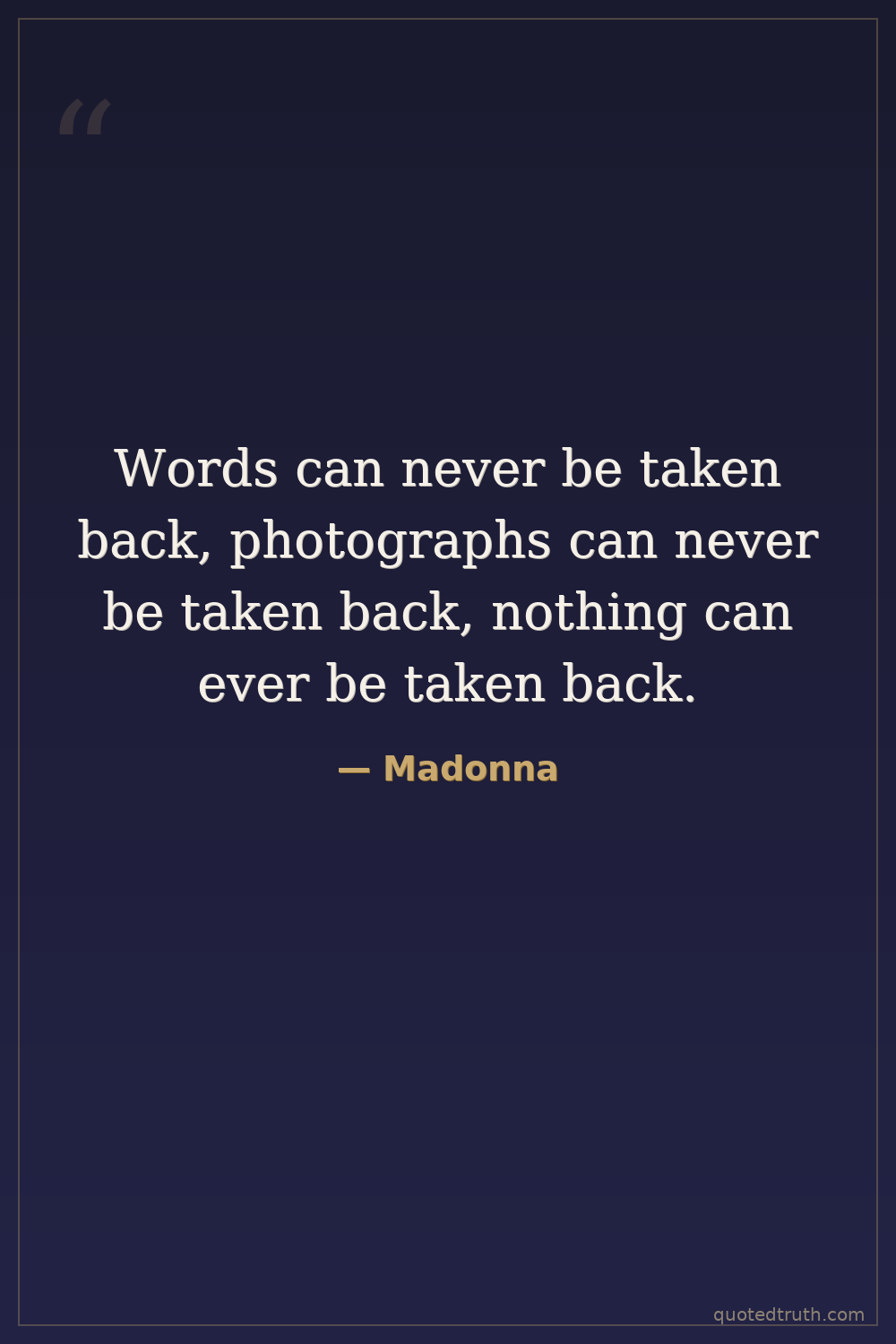 Words can never be taken back, photographs can never be taken back, nothing can ever be taken back.