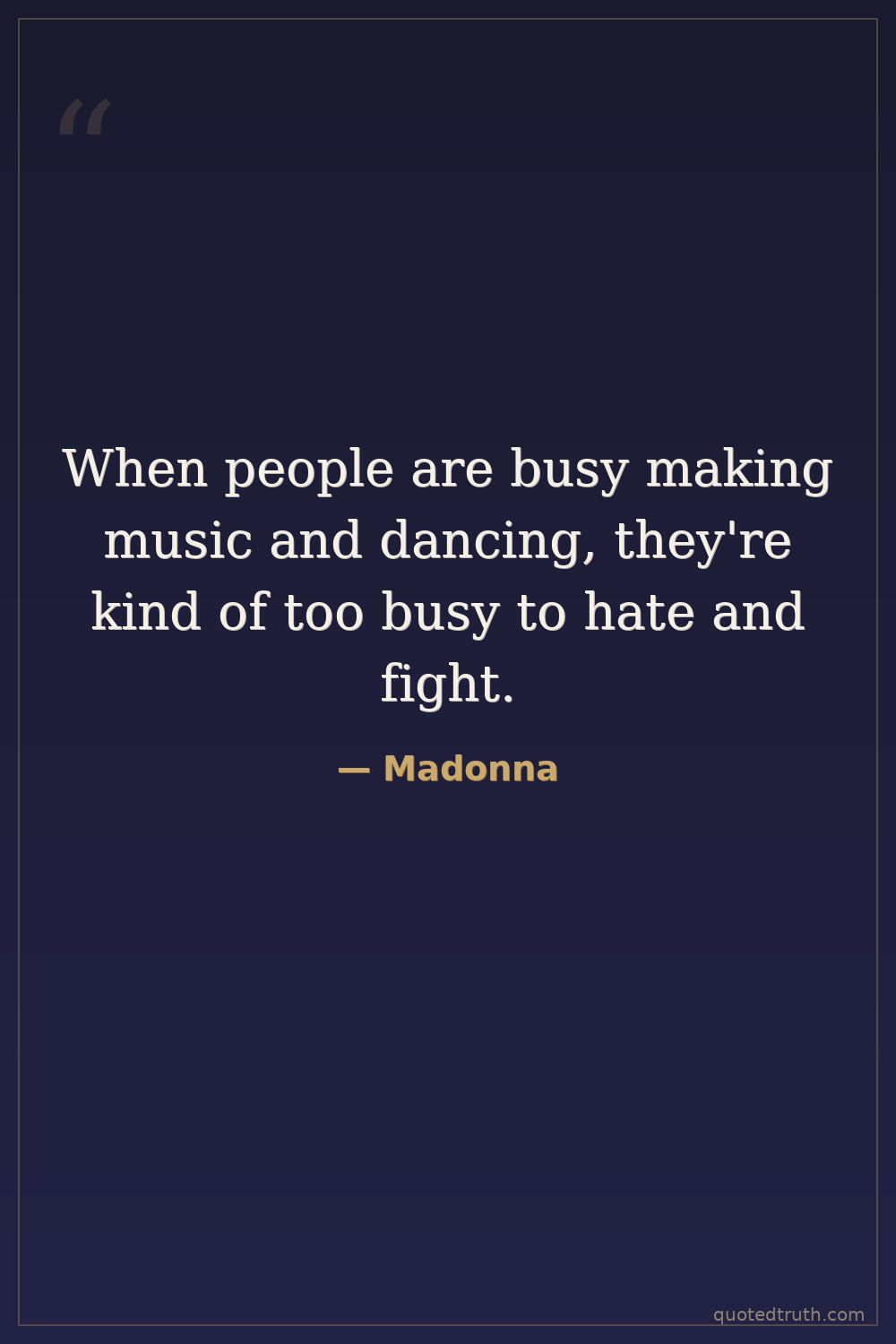 When people are busy making music and dancing, they're kind of too busy to hate and fight.