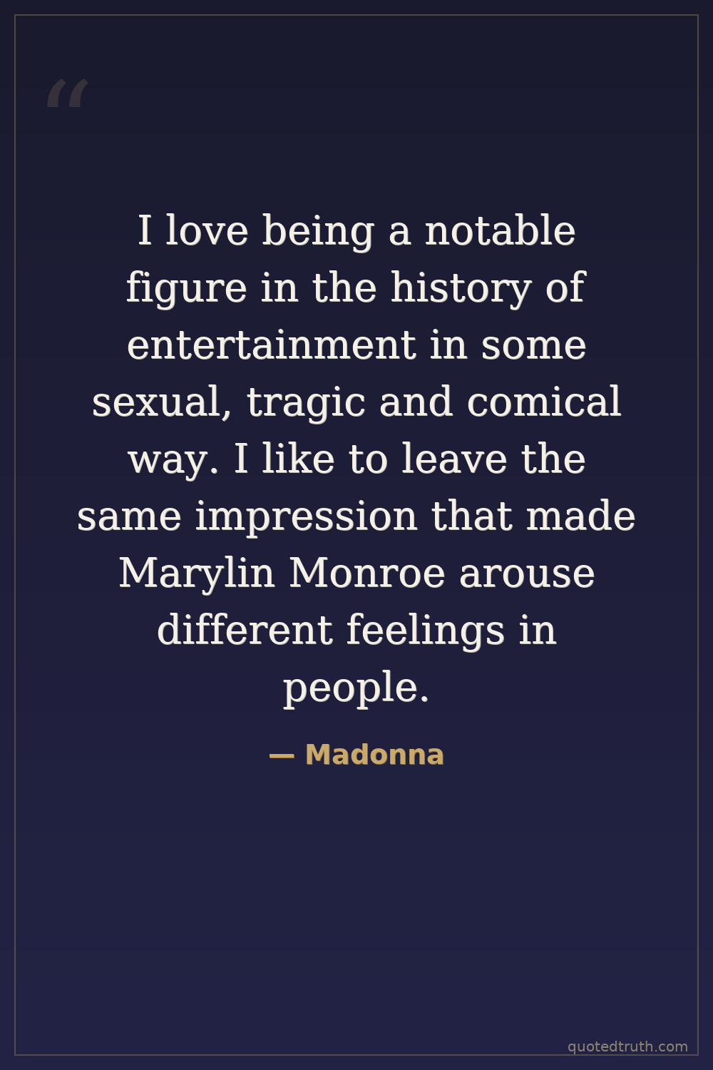 I love being a notable figure in the history of entertainment in some sexual, tragic and comical way. I like to leave the same impression that made Marylin Monroe arouse different feelings in people.