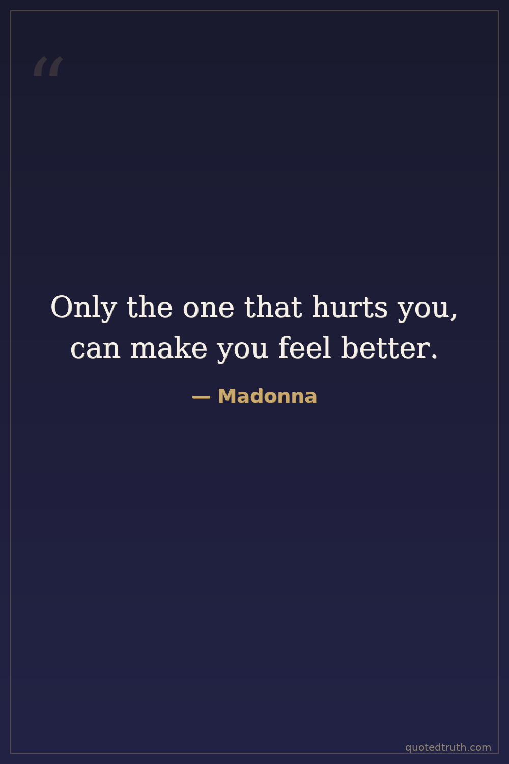Only the one that hurts you, can make you feel better.