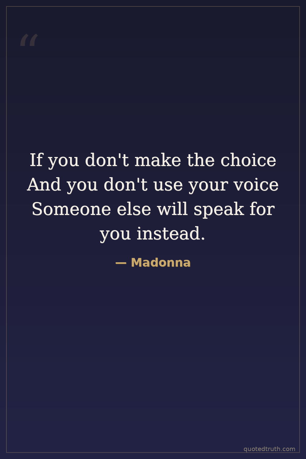 If you don't make the choice And you don't use your voice Someone else will speak for you instead.