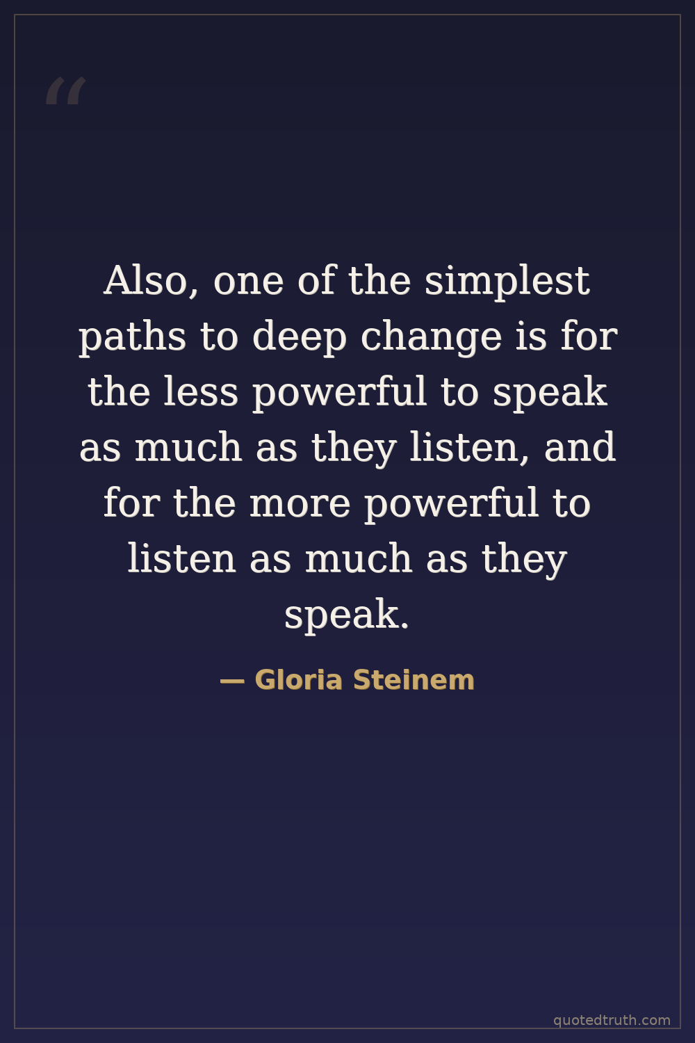 Also, one of the simplest paths to deep change is for the less powerful to speak as much as they listen, and for the more powerful to listen as much as they speak.
